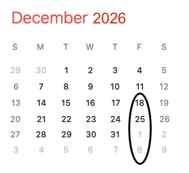 It’s perfect… a Friday for Christmas… and a Friday for New Year’s Eve.