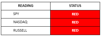 Tuesday closed red across the board. The S&P and NASDAQ were both down over 2%, and the Russell finished down 1.2%. All three indices are now negative on the broad momentum signal.