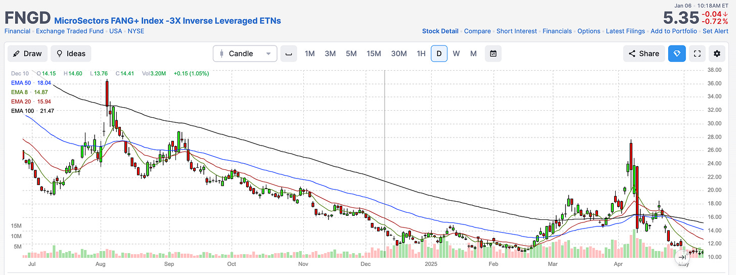 We use tools like FNGD because they concentrate liquidity, leverage, and momentum into one place, making stress visible early.