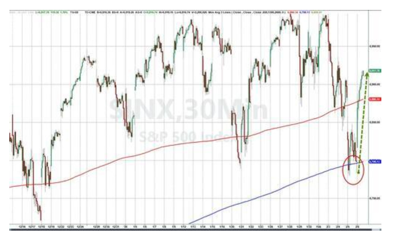In this case, it was a tap on the 100-day moving average on Thursday night at 7:30 pm, around the time that Goldman Sachs (GS) said the software application beatings had run their course. Here’s the S&P 500 off that key moving average.
