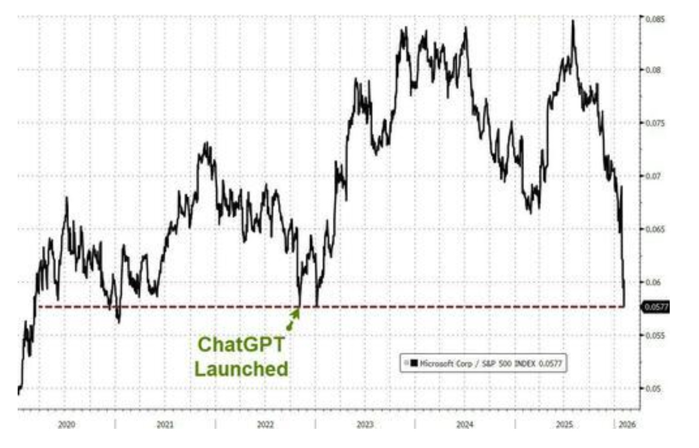 This is Microsoft’s outperformance against the S&P 500 since 2020. You can see that it’s regained all its lead on the Index since the launch of ChatGPT.
