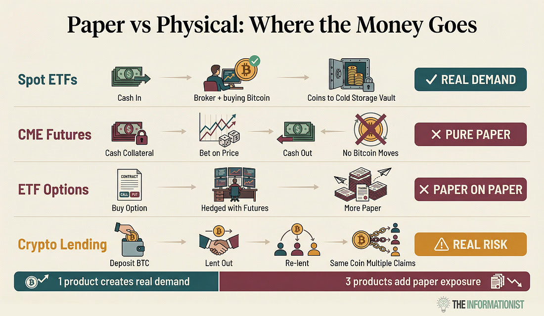For a long time, hedge funds ran a basis trade… They were long IBIT and short CME futures, and just pocketing the spread. Then they ran out of people to sell to…