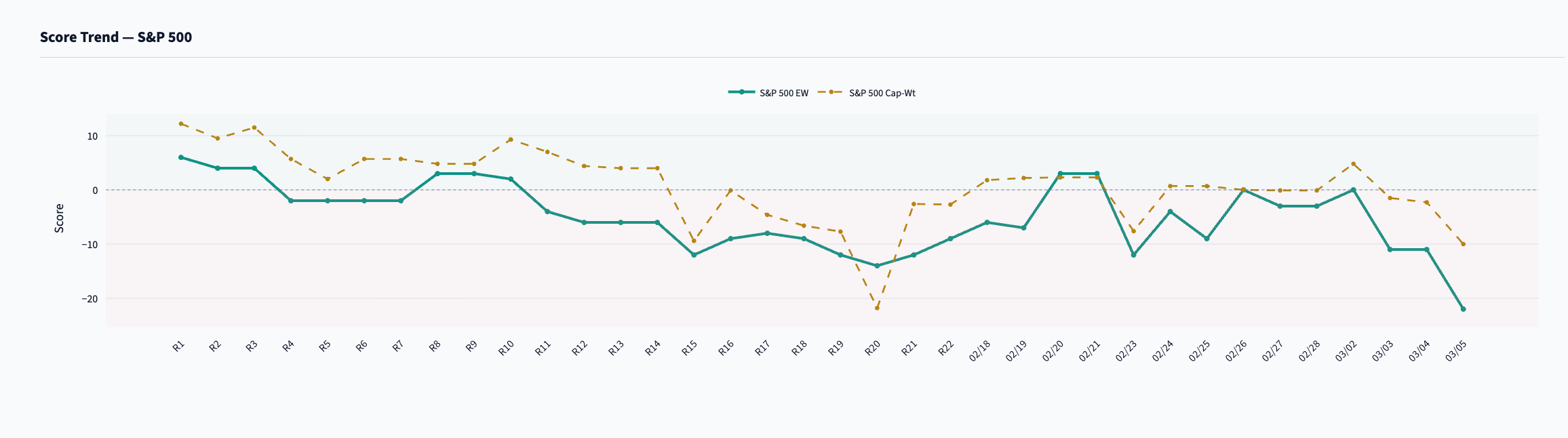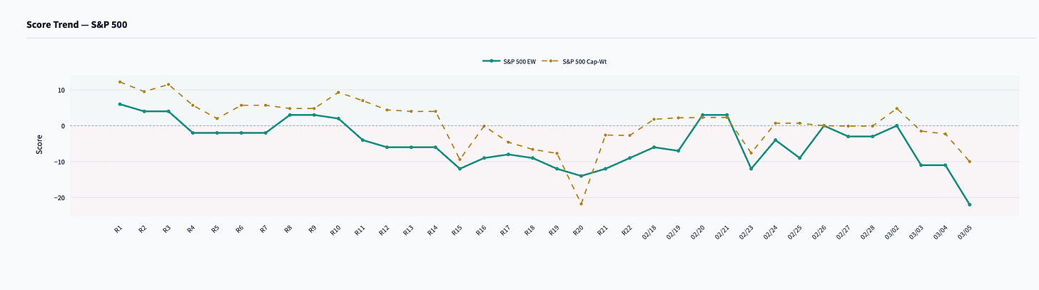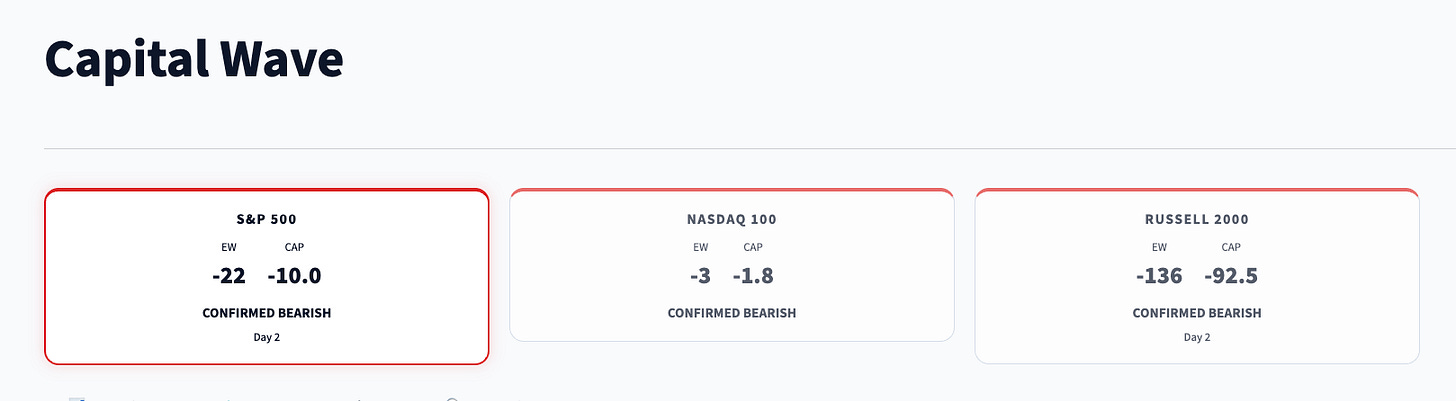 Over at Capital Wave, I’ve been tracking momentum… and our signal has largely been negative since January 28 - with a few tests at Yellow. But we can see, since I started the data set, that there has been a slow, persistent burn lower.